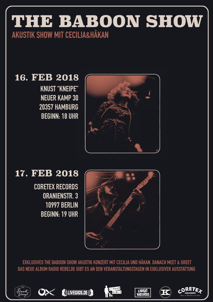 Cecilia and Håkan will do two acoustic instore gigs on the release weekend of our new album Radio Rebelde.