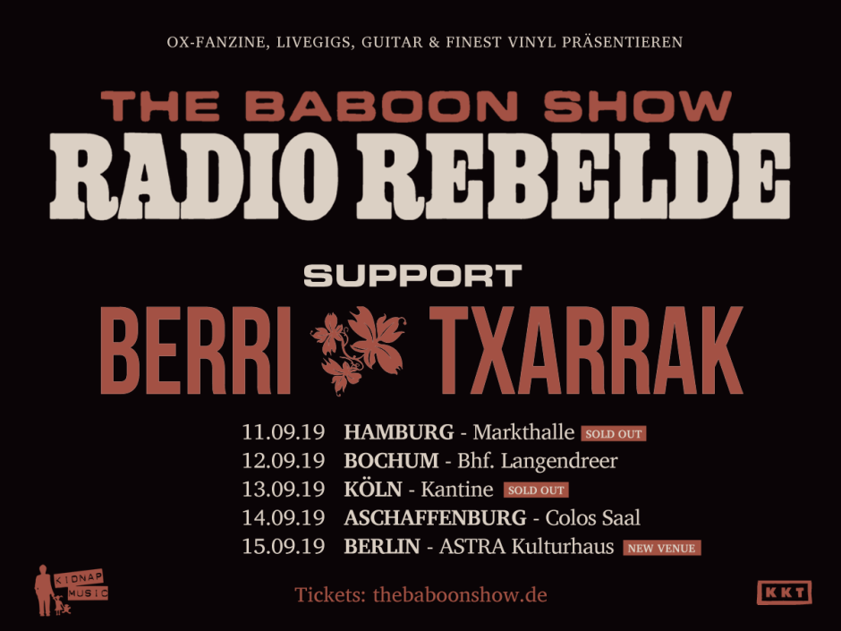 BERRI TXARRAK was founded in 1994. After more then 1.000 shows all around the world and 9 studio records the band decided to announce their farewell tour . The shows together with tHE BABOON SHOW will be the last ones in germany for the basque band.